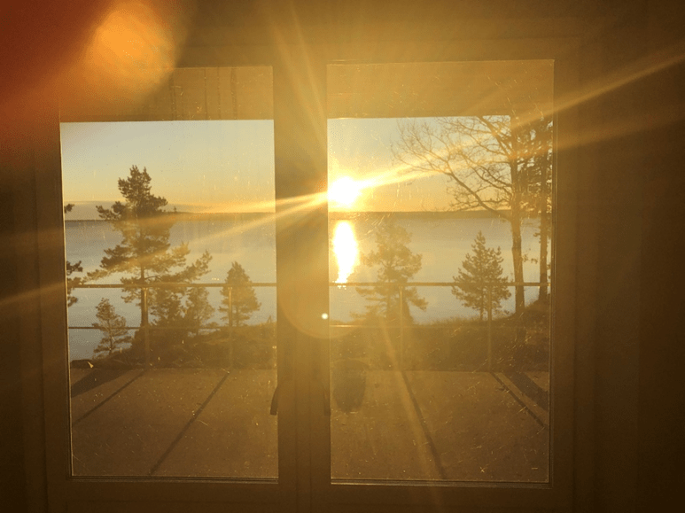 För mig är det viktigt att ha ljus in och utsikt ut. Jag har läst om att patienter som ser ut mot en grön yta tillfrisknar snabbare. Jag är övertygad om att alla mår bra av att få in ljus, särskilt i kök och vardagsrum. Jag är också övertygad om att en vacker utsikt ger glädje och njutning i det dagliga livet. En vacker tavla är bra att ha till hands när det är mörkt men inget slår en vacker utsikt. Den finns där varje dag men är annorlunda för varje dag beroende på sol, skugga, moln mm. Utsikten behöver inte vara helt storslagen utan kan också vara en vacker egen trädgård.