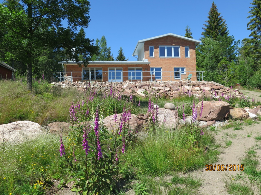 Jag bodde i min tidigare villa i 20 år, bilden med rosorna. Vid 64 års ålder byggde jag det röda tegelhuset på bilden vid Vänerns strand.