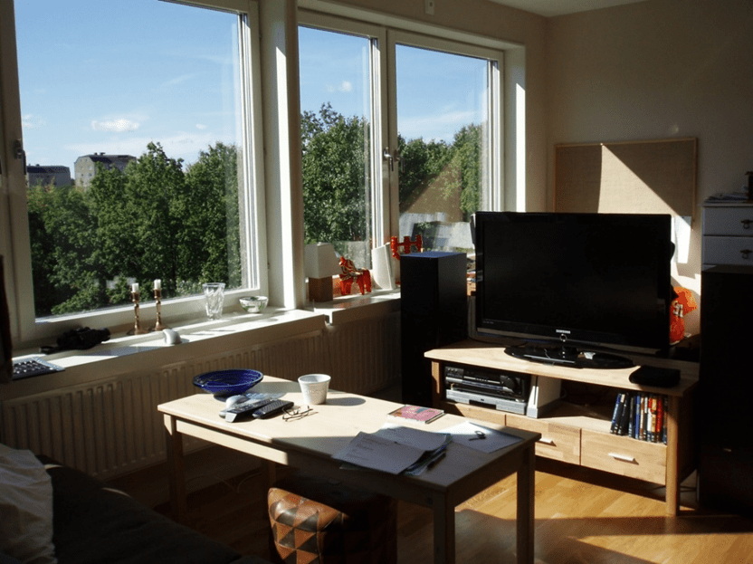 Särskilt i storstäder kan dyra, moderna lägenheter ha en hel fönstervägg i vardagsrummet. Stora fönster ger dig ett viktigt ljusinsläpp och du kommer nära det som är utanför. Om det enda du ser är in i grannens vardagsrum mitt emot så är det inte särskilt trevligt. Tänk på vad du ser från dina fönster och vilken insyn du har.